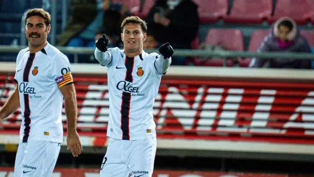Llabrés celebra su gol ante el Numancia. / RCDM
