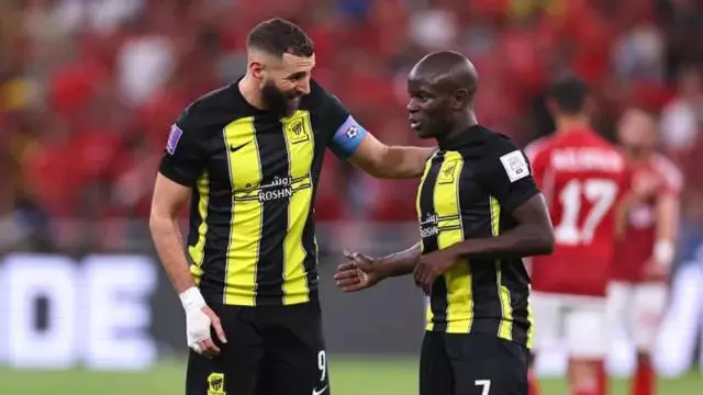 Benzema y Kanté, durante un partido con el Al Ittihad / Agencias